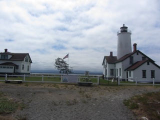 We walked out to the lighthouse near the end of the Dungeness Spit. There are good tides for taking this hike roughly every two weeks. You can walk out to the lighthouse, a ten mile round trip, at high tide, but that means walking on soft sand and clambering over driftwood. At low tide, there is lots of smooth, relatively firm beach, four and a half miles of it. (You'll see the next good tides for this hike if you scan the column to the left, you can look at our tide tables, or you can download Tidefinder.)