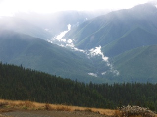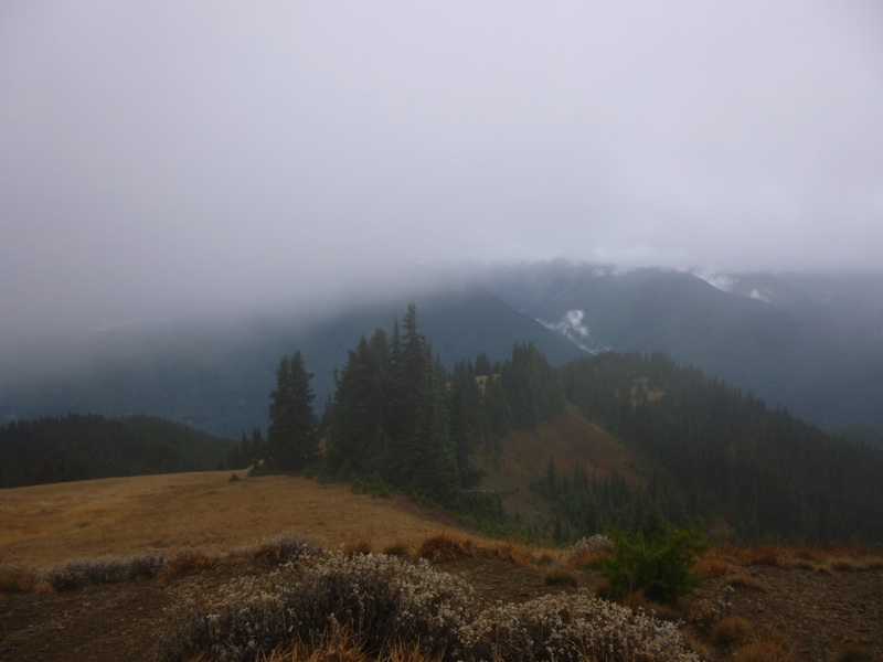 The clouds may have blocked our view somewhat, but they also made everything wonderfully mysterious. While the grand view is one of the big attractions of the Hurricane Hill Trail, it has its charms even on a cloudy day.