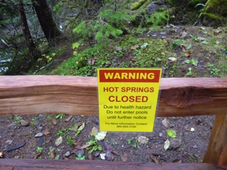 We've only taken the Olympic Hot Springs Trail three times, but there always seems to be something happening. Our first visit, a few days after the trail had reopened after a four year closure, was rather uneventful, but on our second visit, they closed the bridge right before the hot springs. It was being replaced with a new one. Our third time we made it over the new bridge to the hot springs, but while we were exploring, a ranger approached. She was closing the hot springs. There had been a fatality the day before, and the park service was being cautious.