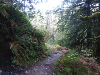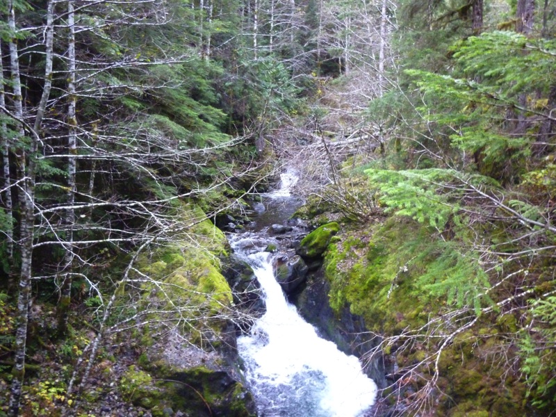 When we left for Australia the North Olympic Peninsula was in the middle of a drought. It was a real relief to get back home and see water, water from the skies and water in the streams. We went out to Sol Duc and took a look at the falls, then headed up towards Deer Lake on the trail that follows Canyon Creek. The falls were full of water as was the creek and as was the trail itself.