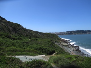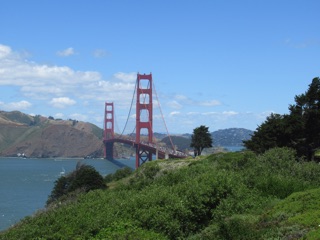 We spent a good part of our day wandering San Francisco's waterfront from Fort Mason heading west past Crissy Field. There are some beautiful views, and it was a sunny weekend day, so the streets and parks were full of walkers, runners, sunbathers, kite fliers, bicyclists and others out just enjoying the good weather. We made our way to Fort Point under the Golden Gate Bridge, then we climbed to the bridge visitor center and started heading south along the Coastal Trail. According to the signs, the part of the trail that leads down to the sea was closed. Despite this, we pushed on a bit, but when the going got rough, we gave up and headed back.