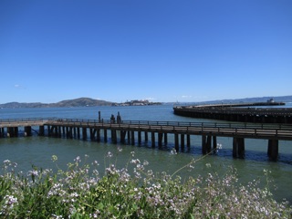 We didn't wander as far afield on our last day. We walked about along the Embarcadero, and walked out on our favorite wooden pier to give our feet a break.