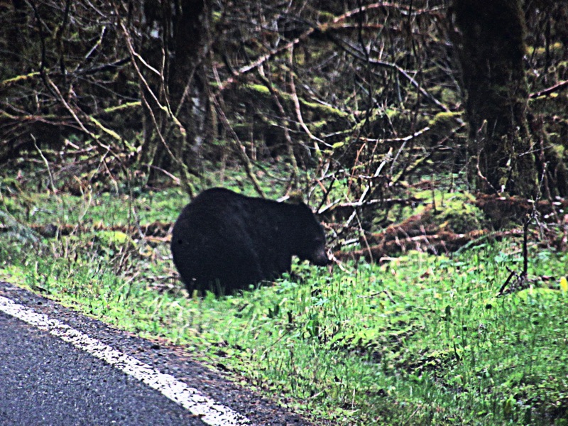 Our latest trip to the Sol Duc Valley had some excitement. We spotted a young bear not too far from the trailhead. We had been driving along enjoying the scenery, deep green forest with occasional views of the Sol Duc River. Then we saw the car ahead of us stopped in the middle of the road. That means one thing in a national park, a wildlife sighting. It was a young black bear, but we only had quick look at him or her. However, on our way back, we had a much longer and better look.
