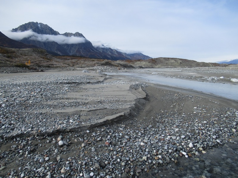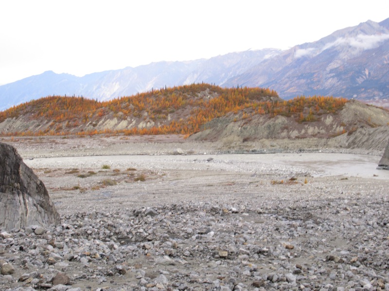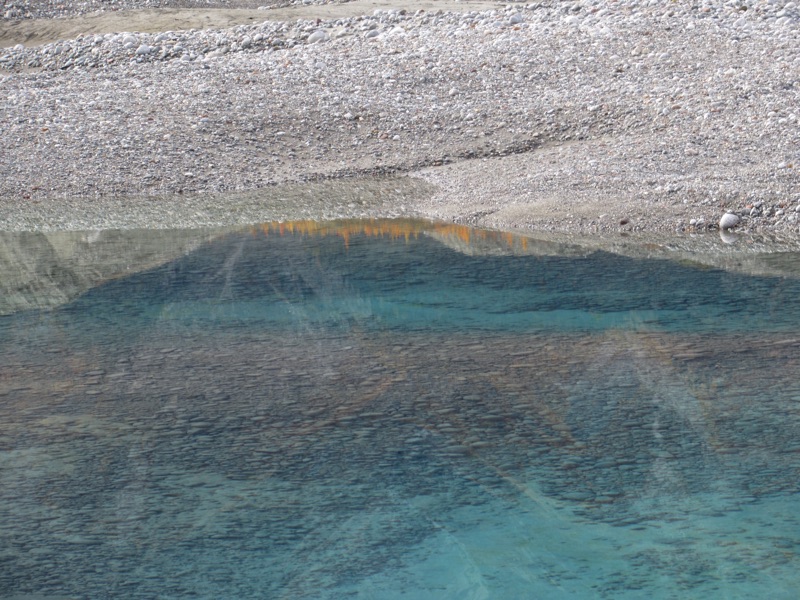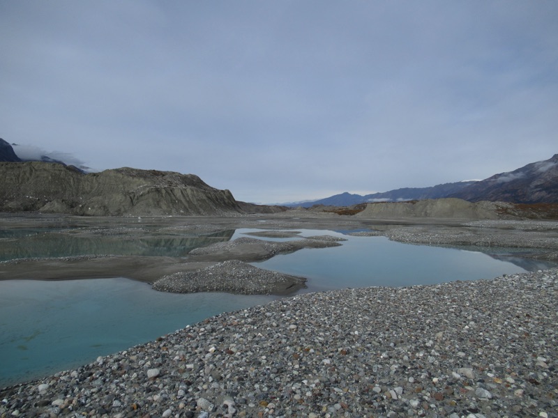Then we flew downriver and landed to explore clear water pools, almost amazingly blue, and brown milky river channels. We were regretting that this was our last day by the Chitina.