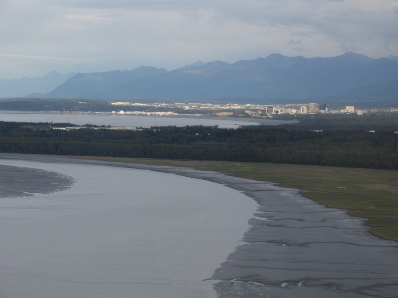 That city we're flying towards is Anchorage, only a three and a half hour flight from Seattle. We stayed up late and managed to catch a sunset, then we explored the city a bit. On the Tony Knowles Coastal Trail we were rewarded with some sandhill cranes.
