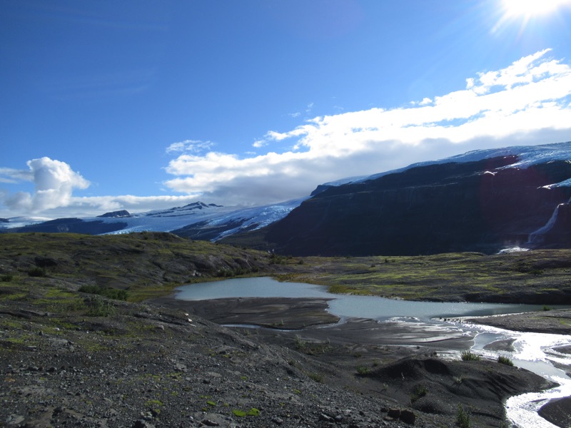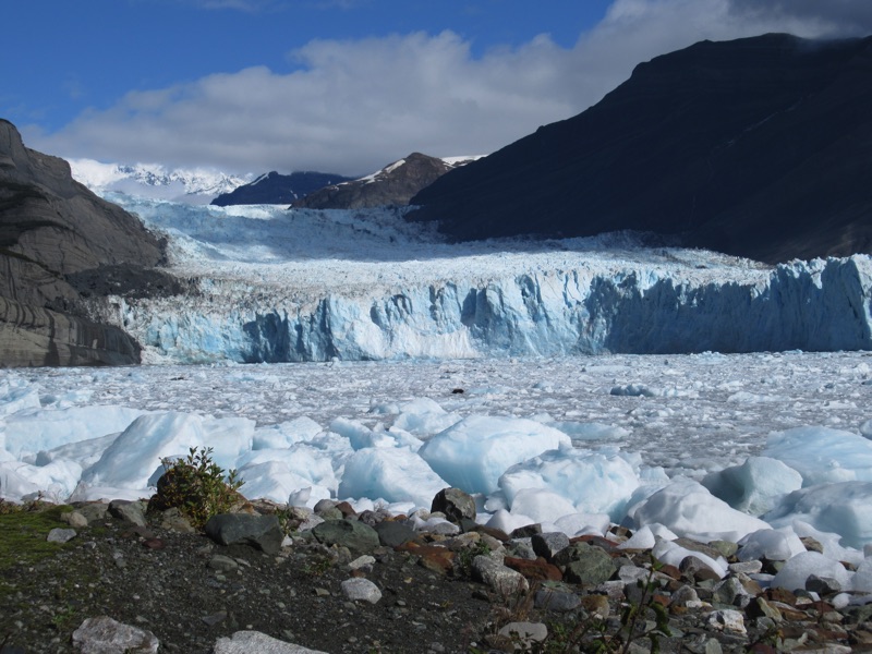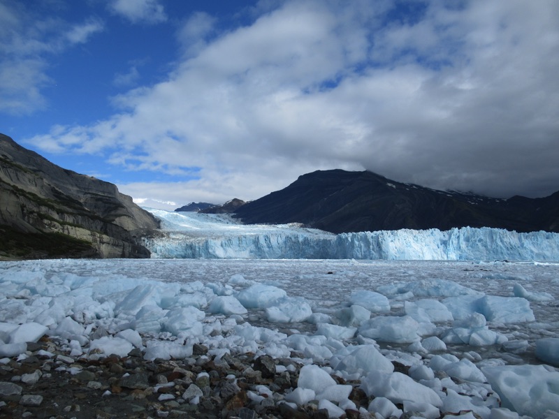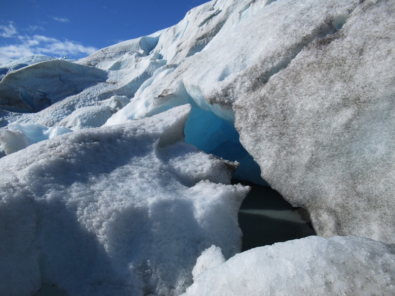 We wandered about for better views of the great waterfall rushing from the glacier at the end of the fjord. There were ice caves and melt pools and strange rock formations. Getting here without an airplane would have required hiking, sailing and then mountaineering. This wilderness is not only roadless, but trackless.