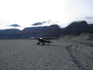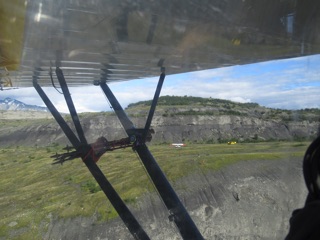 Everything at Ultima Thule is about flying. We spent most of our first day flying around in little Piper Super Cubs. These are a trick to get in and out of and quite cosy inside. The pilot sits on the front seat at the controls while the two passengers sit in tandem as in a roller coaster. Despite their small size and maneuverability, the planes fly smoothly, almost like a car on a smooth road except in three dimensions. They can take off and land on a strip less than a hundred feet long, so they are perfect for exploring Alaska. Roadless areas tend not to have a lot of long landing strips.