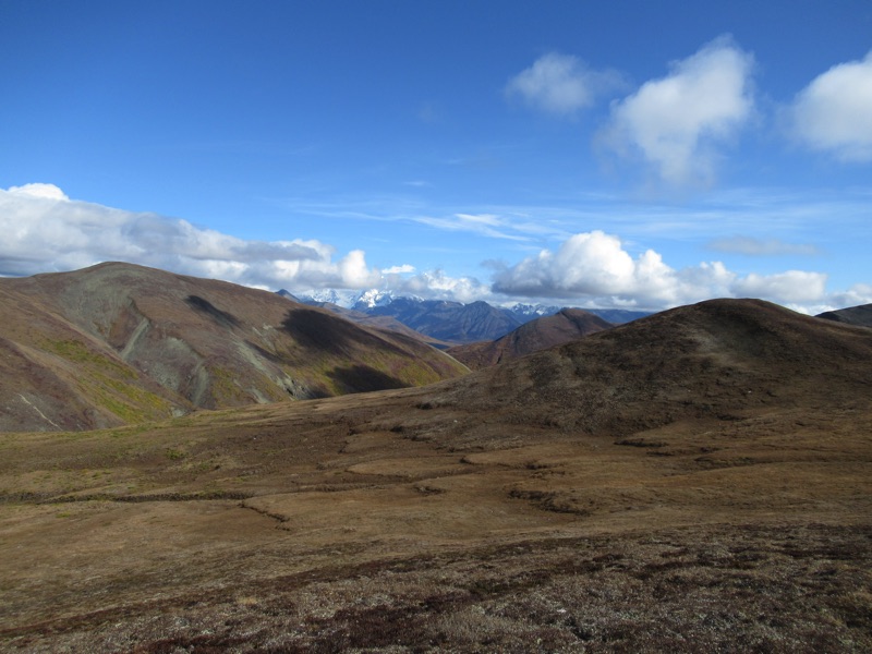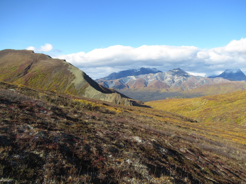 We left our muttons and continued our hike to the east. One thing about being in such big, wide open country is that one can do a lot of walking while the scenery changes only slowly. Alaska is a big country, which is one reason we chose an air based tour. There is just so much of it.