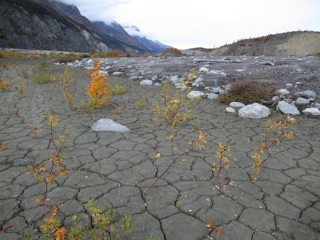 The sand in the river bed is extremely fine. Glacial rivers carry very fine sand as we noted earlier. A light kick could send up a cloud of dust. In the spring, the river bed spawns dust devils, whirling clouds of fine dust. As the winds get more powerful, the entire river bed is almost hidden by the clouds of fine dust, the same dust that gives the river its milkiness.