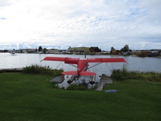 We started our journey at the most peculiar airport. It was right next to the main Anchorage airport, but this airport was full of little planes. A lot of them had wheels and rolled down the highway where they had right of way. Others had floats and had little cut outs and docks so they could just push off like a boat and use the lake for a runway.