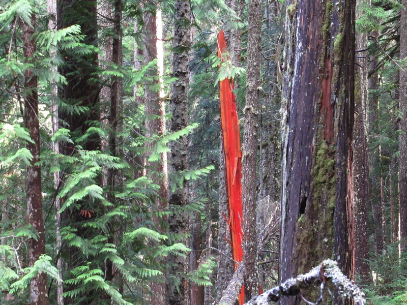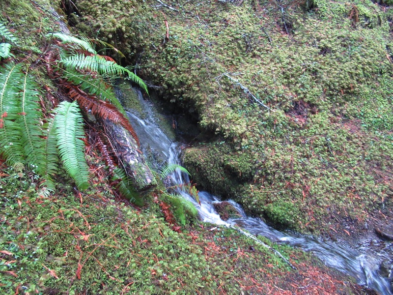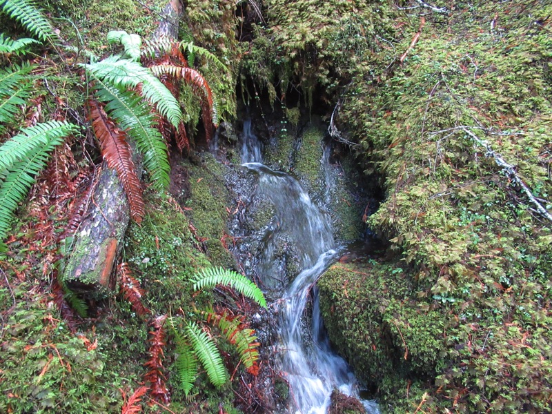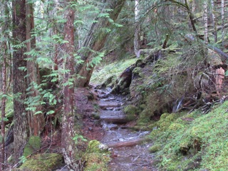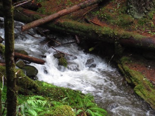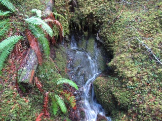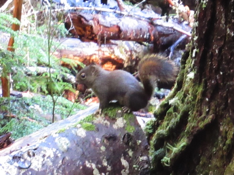 The autumn rains have come. We took a rainy day walk up the Lake Angeles Trail. We only made it to the bridge about 700 feet above the parking lot, but, en route, we saw a host of waterfalls, signs of rain and a squirrel.