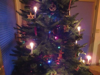 The cookie tree with its candles lit