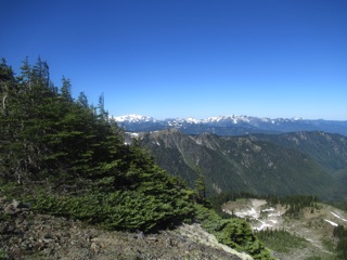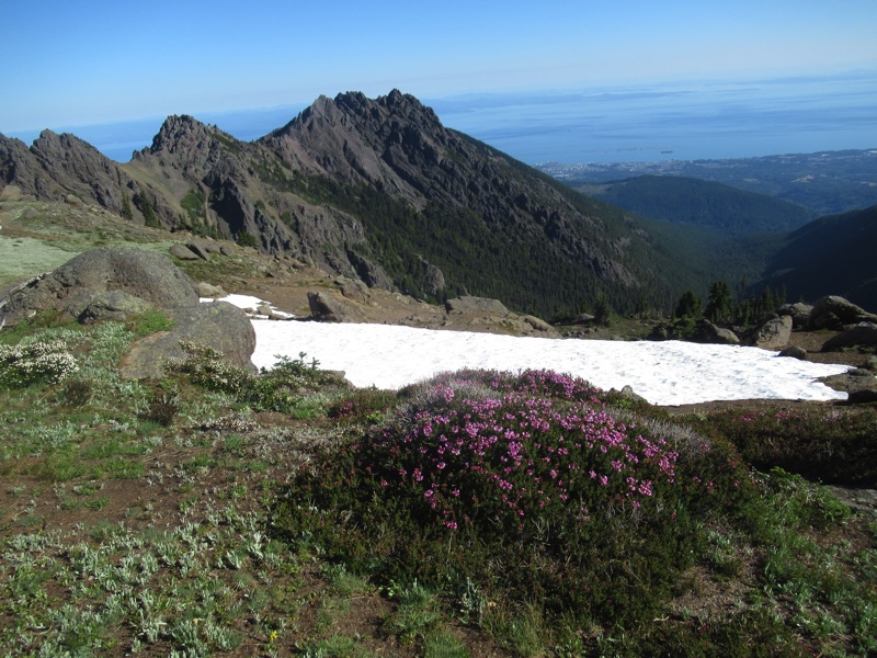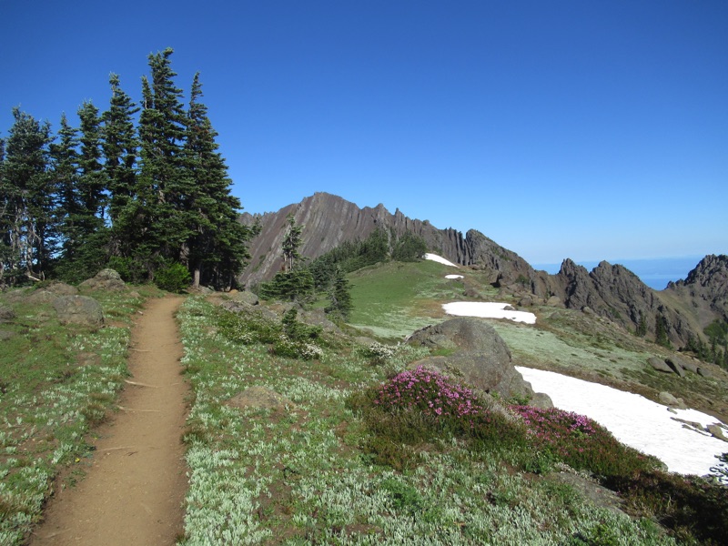 We climbed Klahane Ridge again, once again rising early and getting to the trailhead while the shadows were still long and the day still cool. We made it to the ridge, and then headed on to the kick-in-the-ass. That's what one energetic hiker called the section of the trail down to Lake Angeles that actually takes one high along the ridge into a series of alpine gardens with fantastic views north and south.