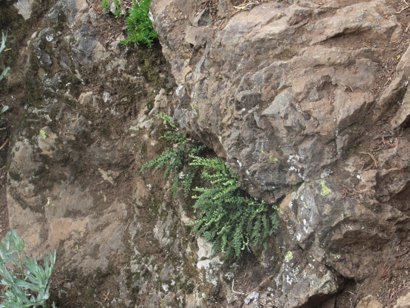 We did it anyway. We started early to avoid the backup at the park entry gate just after the trailhead turnoff. Then we climbed, and climbed and climbed. It's a beautiful trail and a good hard work out. It passes through shaded forest with limited undergrowth, but now and then the light cuts through and highlights something wonderful.