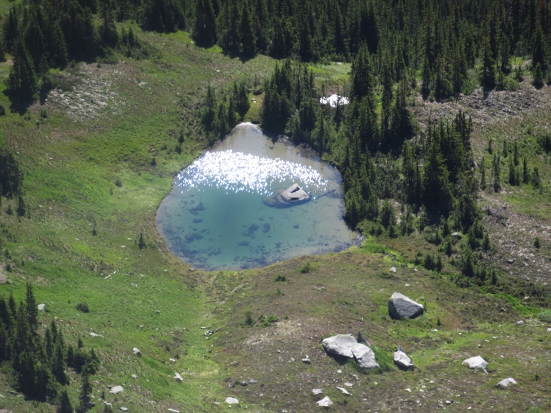 To our own surprise, we made it up to Lake Angeles on our first try. Usually, this is our training hike. We make it first to the stream, maybe 720 feet, then up to 1000 or 1500, and then, maybe, we make it to the lake, a climb of over 2400 feet. This year, getting to the trailhead has been a problem with twenty minute road construction delays, each way.