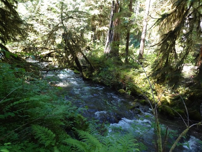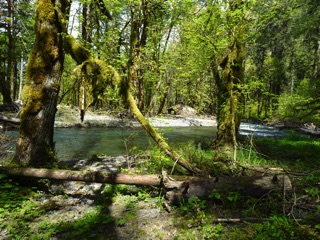 We have been turning this into a regular walk, starting at Madison Falls and heading, by way of the detour, to the Altair Bridge over the Elwha. The columbines are gone and the trilliums and dogwood almost past, but the tiarella is now in bloom as are other late spring blossoms.