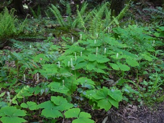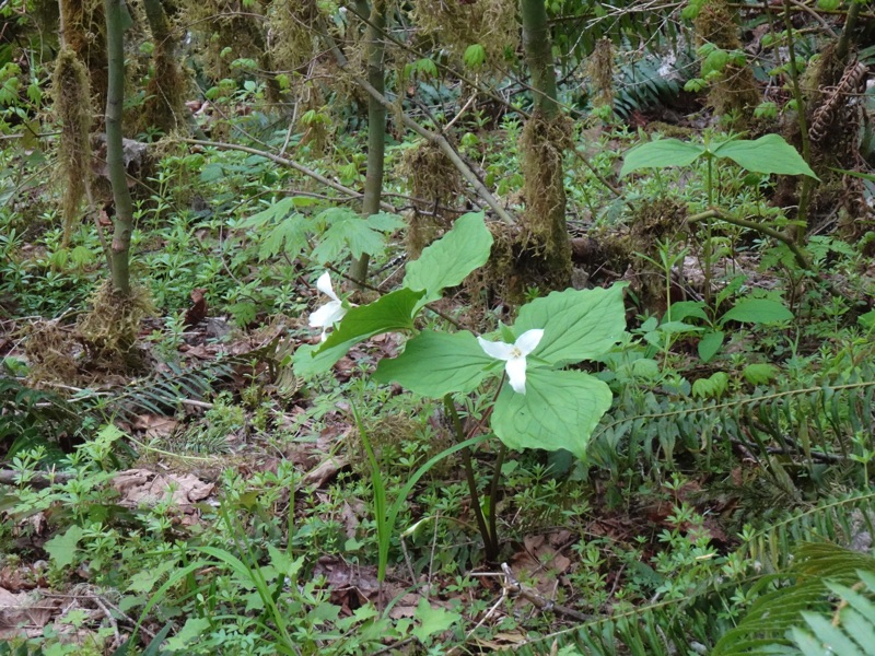 The last time we wandered along the Little River Trail, the trail was lined with trilliums. They were all over the place. This time, the trilliums were passing, but the false Solomon's seal, tiarella, Pacific dog wood and others were taking up the slack.