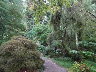 We were in Seattle for a short trip and took a walk from the UW light rail station to the Japanese Garden. We headed south across The Cut and took a hard left then headed down the steps towards the water. We followed the trail through scrub forest and along causeways to Foster Island and then south, under the highway, to the Arboretum. Usually, we give up around here, but this time we continued south and made our way to the Japanese Garden. The trees were still green, so we'll be back later in the fall for some proper leaf viewing.