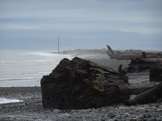 In January, we had take a walk at the Dungeness Spit with the tide nominally at five feet. We usually recommend hiking the beaches of the North Olympic Peninsula when the tide is down around three feet or so, but it was a mild day, and we found lots of sand on the beach and easy going. Not so on our most recent five foot tide visit. The tide tables told us the same tide height, but the tides begged too differ. Recent rains, storm winds and evil gremlins gave us a lot more wild sea and a lot less walkable sand.