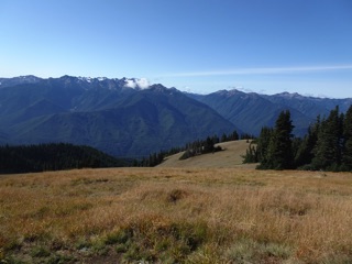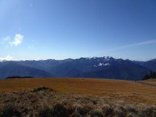 We were originally planning another hike, but the sky was so blue and the day so pleasant that we had to get back to Hurricane Hill while the road is still open. The road from the lodge to the Hurricane Hill trailhead often closes before Hurricane Ridge Road. It was fairly busy, but it was definitely shoulder season. We had to park at the nearer picnic area, but that just added 15-20 minutes to our hike.