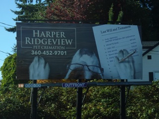An ad for pet cremation, not a law firm that does wills for pets. It's right next to a veterinary clinic.