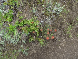 We made it up to Hurricane Hill for the first time this year. We've been watching the webcam and following the park road announcements. The road from the lodge opened maybe a week ago, so we got a moderately early start and headed up the hill. There are now two booths at the entry station, a result of last year's construction, which should help somewhat this summer. The road was busy, but we have seen it busier. The parking lot where the Hurricane Hill trail starts was full, and the lot at the closer picnic area was almost full. No one wanted to park in a huge puddle, almost an inland sea, that spanned three spaces, so we parked offshore. That's what hiking boots are for.