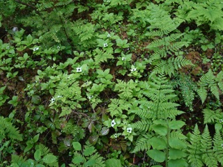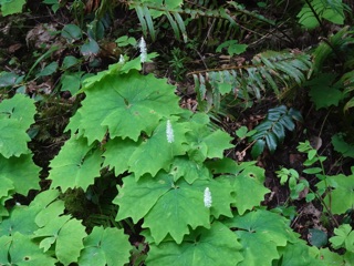 We weren't up to a longer walk, but we wanted to get back to the Little River Trail, so we only took the trail up for a ways. Most of the trilliums were gone, but the mock Solomon's seal was out and smelled wonderful. There was also tiarella and a surprise, Pacific dogwood, a whole patch of it along the trail.
