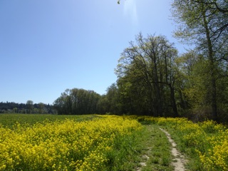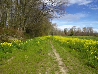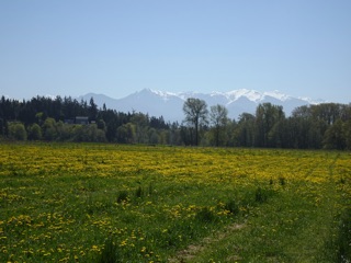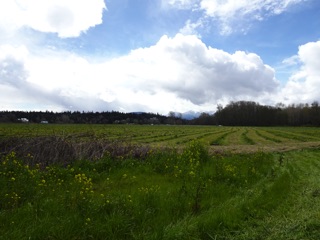 We were back at the Dungeness Dike to check out the rising river. The whole point of replacing the old dike with this new one was to let the river flood freely. Well, it's working. The waters were much higher and the flood waters deeper. The fields were full of mustard. Hawks and eagles were about. We'll see how high the waters get when the spring melt starts in earnest.