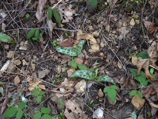 On our way back, we spotted another sign of spring. We saw our first columbines. To be fair, we saw their leopard spotted leaves. They weren't ready to bloom, but when you are desperate for signs of spring, that's close enough.