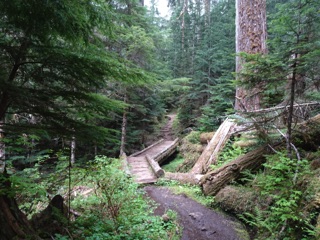 We've been building up for the summer season by climbing as far up the Lake Angeles Trail as we can manage. So far, that's been about 1250' from the parking lot. The trilliums are gone, but the Pacific dogwood have yet to bloom. We climbed up into the clouds and didn't let a little fog stop us. We made it half way up to the lake, but the season has just started.
