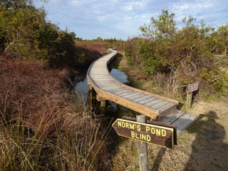 For a nice long walk, we had the lodge drop us off at the North Dike. We walked from there south along the east side of the pond taking a sidespur for each observation blind or tower. We cut back west along the South Dike and took the main road back to the lodge.