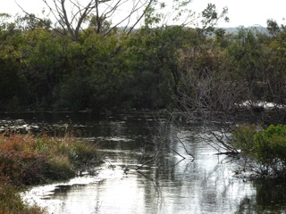 We explored the beach for a while. Then we headed back to the lodge with a stop at Norm's Pond. Norm is the biggest alligator on the island, and Norm's Pond is the biggest, best and deepest pond there. Norm lives alone except for Norma, his lady alligator friend.