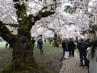 The trees were in full bloom with every branch full of flowers and even flowers bursting from the trunk. The university was ready for the event with signs and facilities. We made a full loop of the quad stopping here and there to admire the flowers and to let people take photographs. Who could blame them? It's not like we didn't take a lot of photos ourselves.
