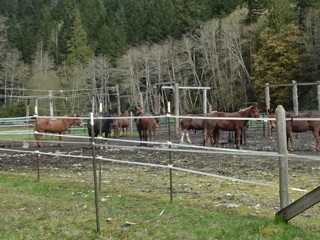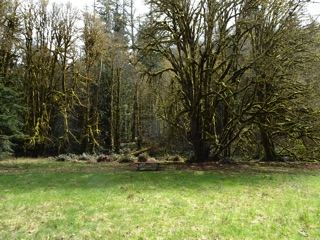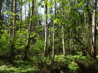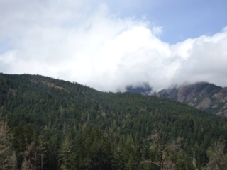 It's springwatch, and one of our favorite places to watch for signs of spring is the Elwha valley. We start at Madison Falls, the end of Olympic Hot Springs Road, and make our way via the detour through the hills behind the old campground, to the Altair Bridge. We've already spotted fawn lilies and trilliums and checked out the skunk cabbage. There were more trilliums this time and the skunk cabbage was going strong.
