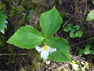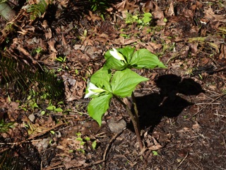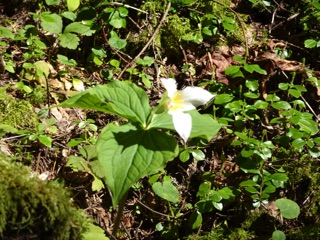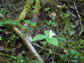 Can you see the trillium across the river? Look for a fallen log.