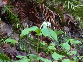 We went back to the Little River Trail and made it a bit farther along. We were impressed with all the trilliums last time, but there were many more on this hike. There were also mushrooms, slugs, orchids and rushing water. We even saw some spiderweb-like leaf skeletons on the trailside.