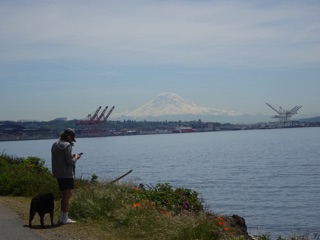 We did some wandering in Seattle. First, we made our way down the new ziggarut that connects Pike Place Market with the waterfront. There's no viaduct. Instead, there's a maze of ramps and steps, a playground, viewing spots and spectacular views. It's a great addition to the city.
