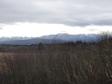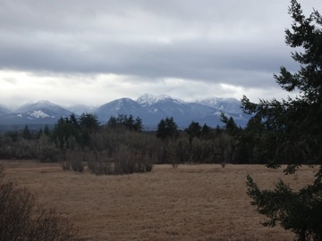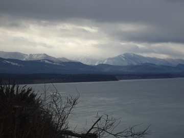 This isn't one of our most ambitious hikes. It's just heading south from the Dungeness Spit parking lot along the water and then cutting inland. It offers great views of the Strait of San Juan de Fuca and the Olympic Mountains. This time, everything was fog enhanced. The sky was a spectacular gray and the mountains blurred in the distance. It was an easy enough walk but very rewarding.