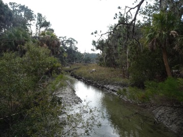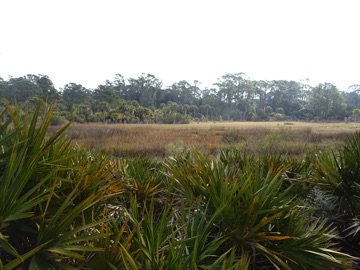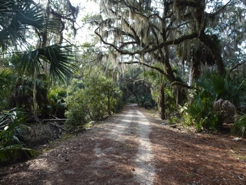 One of our favorite places to wander on Big St. Simons Island is the Guale Preserve. Coming from the Northwest, it's exotic country with its flat terrain, gnarled trees, sandy soil and palmettos. The first part of our walk had a bit of up and down though not enough to qualify as terrain. It was old sand dunes now covered with organic matter, forest and palmetto. We headed back on the old telephone line trail which was completely flat. Welcome to the Southeast.