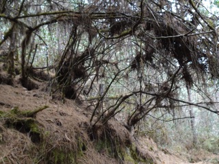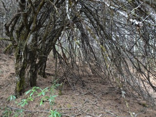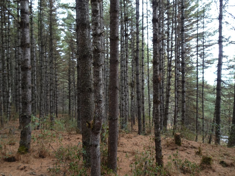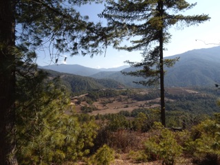 In the afternoon we climbed a bit into the hills west of the hotel. We started in the village and made our way up a forest road, unpaved but wide enough for motorized traffic. This had been narrower, suitable for walkers and stock, until fairly recently. The government not only widened the track, but now an electric lines up into the pass. We didn't run into any traffic, though we did pass a number of other walkers. Our guide said that they were probably from the next province to the west, a five or six hour journey.