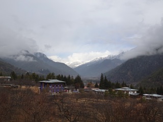 We were set to fly back to Paro, but the weather was not cooperative. The approach to Paro is tricky. The airfield is located in a narrow valley which means a long corkscrew of a descent before lining up with the runway. The plane flying in from India attempted a landing, but the snow, winds and bad visibility made it impossible. The plane returned to India. That meant no plane from Paro to Bumthang, so our flight was cancelled. We would have to endure another day in the lap of luxury in Bumthang.