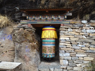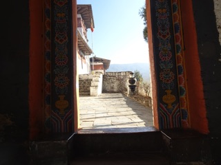 We visited the local fortress and another fine temple near Bumthang. The fortress was like a small city with hidden streets and courtyards. Nowadays much of it is office space with all sorts of local and national administrative offices, but it still serves as a place of worship. Then we walked cross country to another temple and saw the ancient cave, the oldest part of the sacred site.