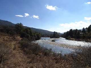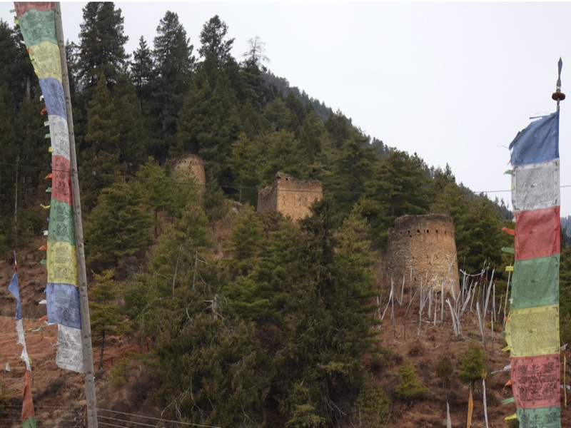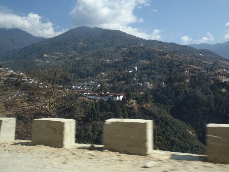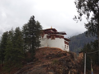 We woke up early, Venus and Jupiter were still in the sky, and we could see the moon over the valley. We had a long way to go up twisting roads and down into narrow valleys. We could see distant mountains covered with snow and glacial rivers. There were prayer wheels and flags and dzongs dominating hillsides. We even saw a monkey.