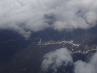 We flew out of the airport in Paro heading towards Bangkok. The approach is probably a pilot's nightmare with the plane corkscrewing to gain altitude in the narrow valley. Then we were over the base cloud layer, leaving Bhutan.
