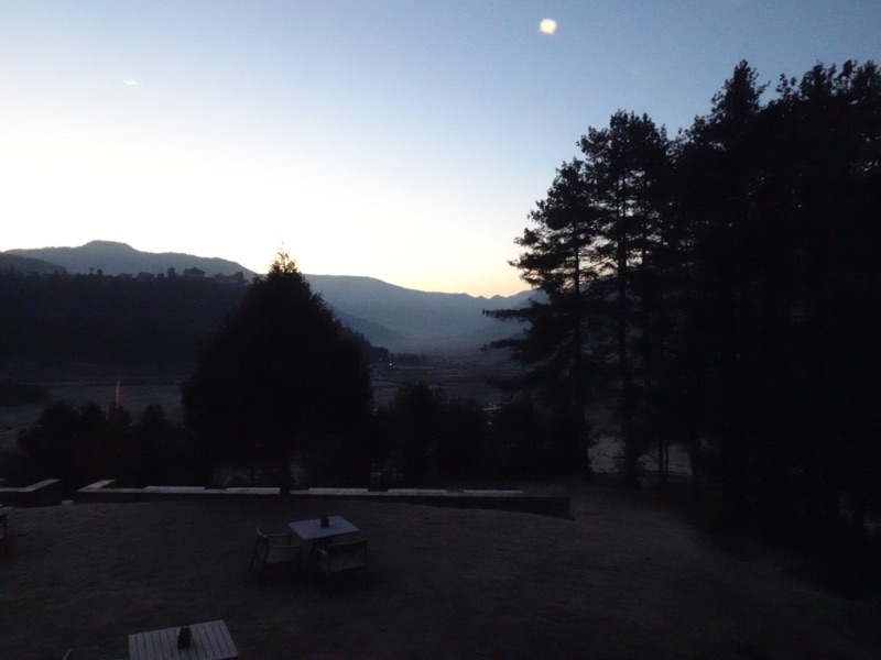 The hotel as we settled in for dinner - Weather was worse in Paro.