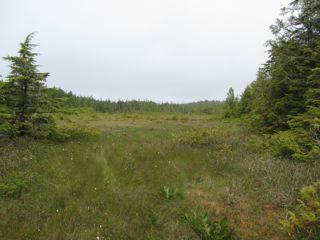 We crossed the Ozette River near where it flows into Lake Ozette, and headed into the forest. A lot of the trail is boardwalk, and there were lots of ups and downs. Several times, we'd take a series of steps down, cross a wooden bridge, and then take another series of steps back up. We made our way to Alstrom's Meadow. On our way back we met a group of Alstroms pondering their relation. Here the forest thins and the trail follows mostly a boardwalk through a sea of grass.