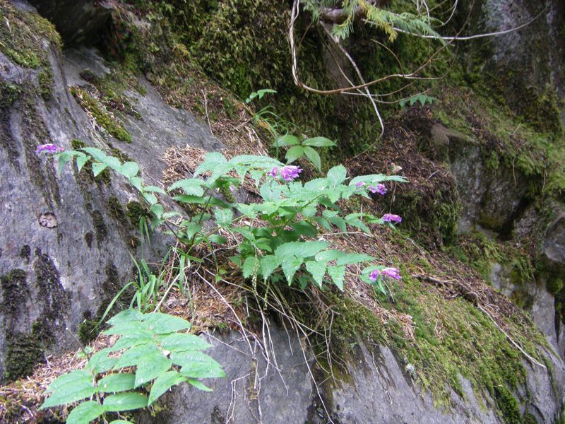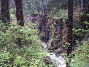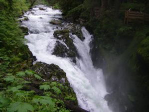 The trail heads through old growth rain forest and in about 20-30 minutes gets one to the spectacular Sol Duc Falls. With the recent rains the falls were roaring and the bridge covered with spray. We continued on the far side of the river and headed up the canyon towards the little bridge over Canyon Creek. It was a wet, rocky trail and arduous.
