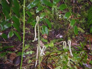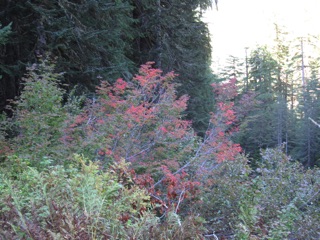 We climbed Storm King today. We spent the last month dreading it. It is a brutal climb with a lot of slippery scree. Naturally, we can never make a head on assault. We have to work indirectly, so we drove off to Sol Duc to check out the trail to Deer Lake. As we neared Barnes Creek, we slammed on the brakes and swerved into the Storm King parking lot. Before we knew what had hit us we were at 450', passing the ramada where a youth group was lunching. Around 1200', as we were passing the little side spur to the alpine overlook, we regained consciousness and realized that we were going to make it. You'll find a couple of new snapshots on our Barnes Creek et al page.