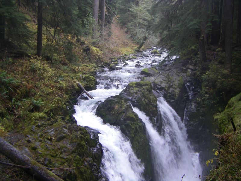 When we left for Australia the North Olympic Peninsula was in the middle of a drought. It was a real relief to get back home and see water, water from the skies and water in the streams. We went out to Sol Duc and took a look at the falls, then headed up towards Deer Lake on the trail that follows Canyon Creek. The falls were full of water as was the creek and as was the trail itself.