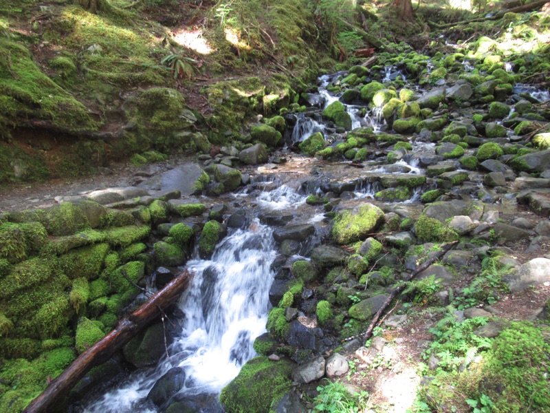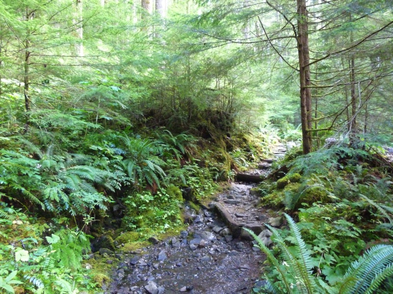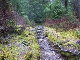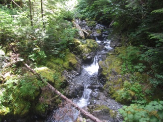 There is a little bridge across the side stream that flows from Deer Lake to the Sol Duc, then the trail begins to climb in earnest alternating between flat areas and staircase like climbs. The lake is about 1600' above the falls, but the effort is worth it. Deer Lake is a jewel in the mountains.